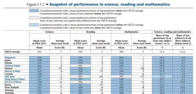 亚太经合组织,PISA2015年报告,新加坡在科学、阅读、数学全部位列第一