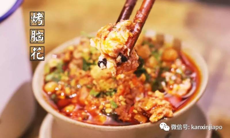 (烤脑花,是川渝地区的一道传统特色小吃,采用猪脑子,拌之以辣椒末、花椒粉以及其他佐料烤制而成)