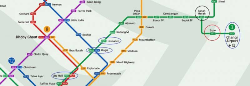 注意:这是非常关键的一站,因为如果从其他地方(除樟宜机场外)乘坐地铁前往考场,需要在这一站换乘樟宜机场地铁站(Changi Airport MRT Station CG2)方向的列车,各位家长和考生不要忘记换乘,否则就会坐过站。