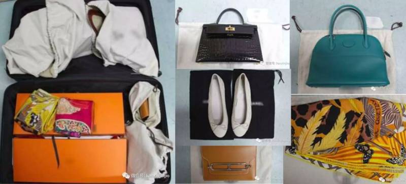 其中一个箱子,是爱马仕合集……为了节省空间,只能丢掉包装盒,用配套的防尘袋塞了。