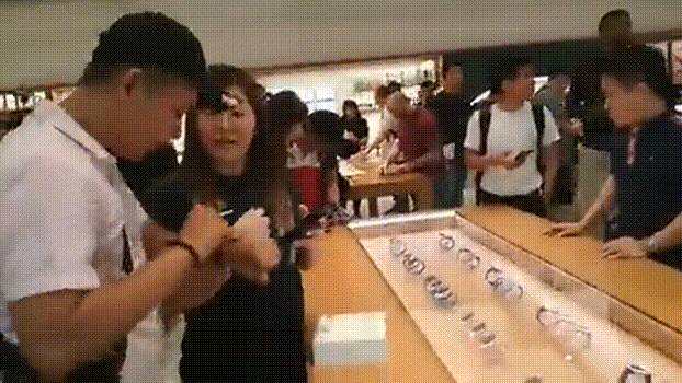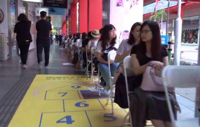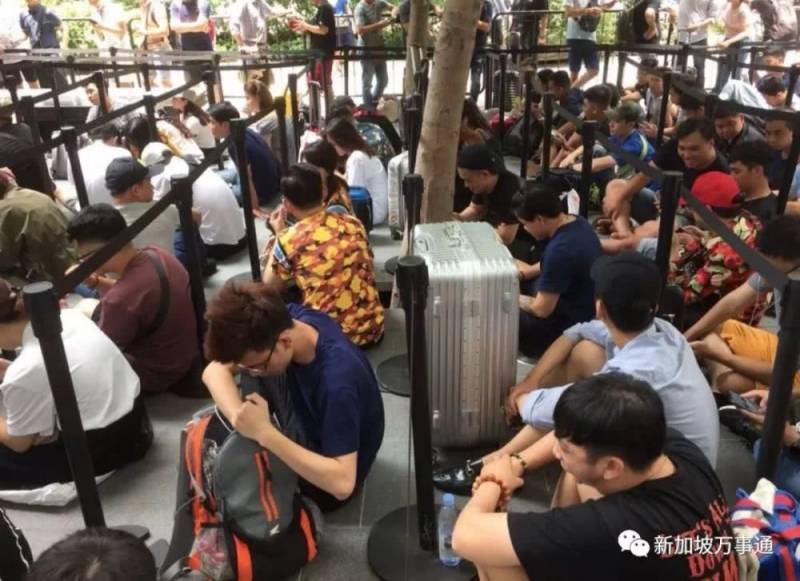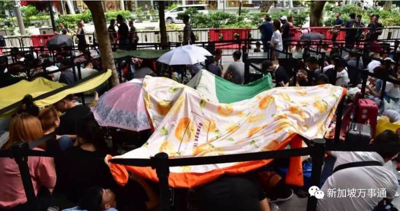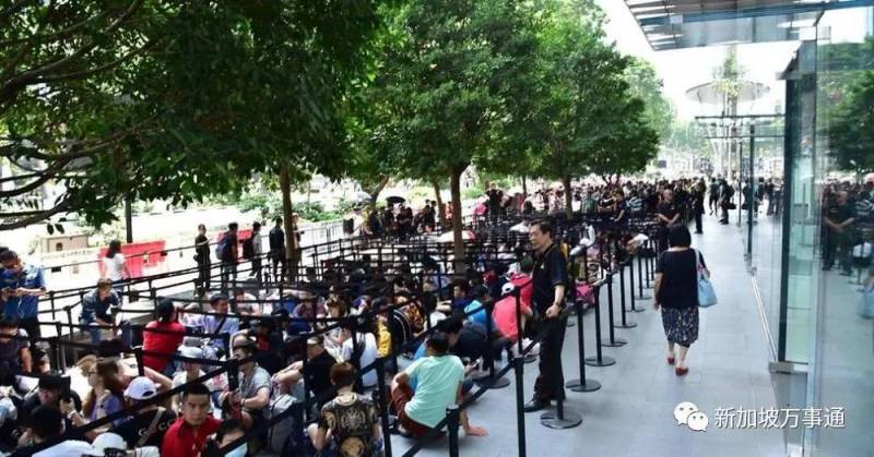 有椅子坐还有漂亮小姐姐相伴,还不来排队?!坡岛的果粉们已经哭晕在厕所了~