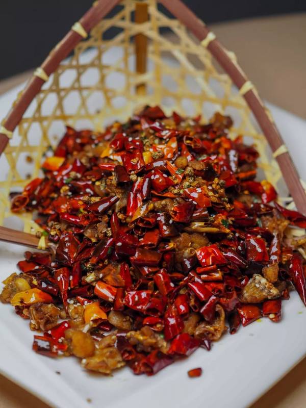 川菜的辣椒香气诱人无比,菜还没上就能闻到其味。在辣椒中寻找肉块,是大家享用这道菜的最大乐趣。如果你吃腻了辣子鸡,不妨可以点这道辣子牛蛙,入口外脆里嫩,感觉比辣子鸡更胜一筹。