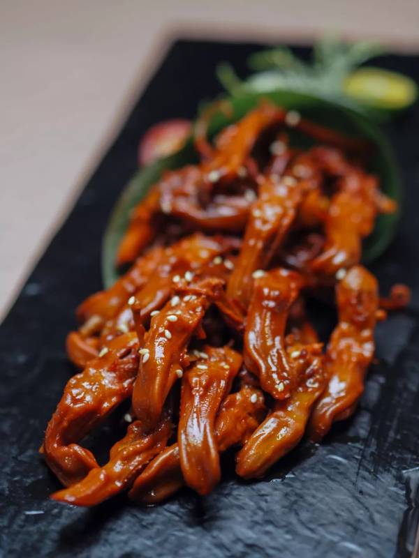 油浸鸭舌油亮咸香,精美的摆盘让鸭舌显得特别的可爱。软嫩的鸭舌带有弹性,入口麻辣咸香,让你欲罢不能。