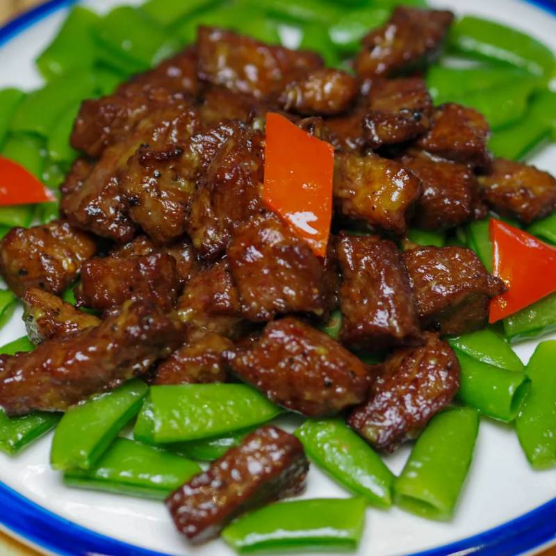 蜀宴主打新派川菜,菜式中贯穿着“地道蜀风,色似杭帮,味融粤”的几大特点。而这道芥香安格斯牛肉粒,看似更有粤菜的风味。以翠绿爽脆的荷兰豆为底,上面铺满的是切成入口大小的安格斯牛肉粒,油脂香气融于口中。再搭配鲜红的灯笼椒。红绿相配,错不了。
