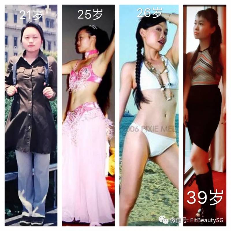 上大学时候18岁发胖从47公斤到60公斤, 寻寻觅觅减肥方法6年,直到25岁接触肚皮舞, 2年后恢复47公斤。 直到30岁时连生三个宝宝仍然保持49公斤体重。41岁仍保持49公斤。