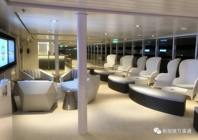 邮轮顶层是棕榈阁,观景廊酒吧为一体,提供下午茶。