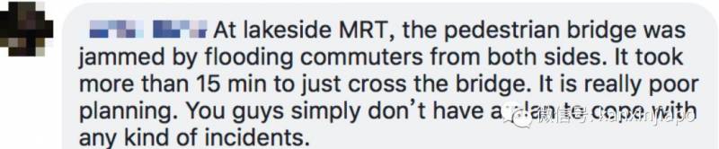 Lakeside的地铁站附近的换乘也是堵得水泄不通,乘客抱怨SMRT没有安排好任何故障发生时的应急方案。
