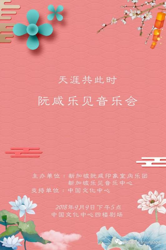 由新加坡阮咸印象室内乐团与新加坡乐见音乐中心联合主办,中国文化中心支持的“天涯共此时·阮咸乐见音乐会”在当晚与大家共度了一个难忘的艺术中秋。