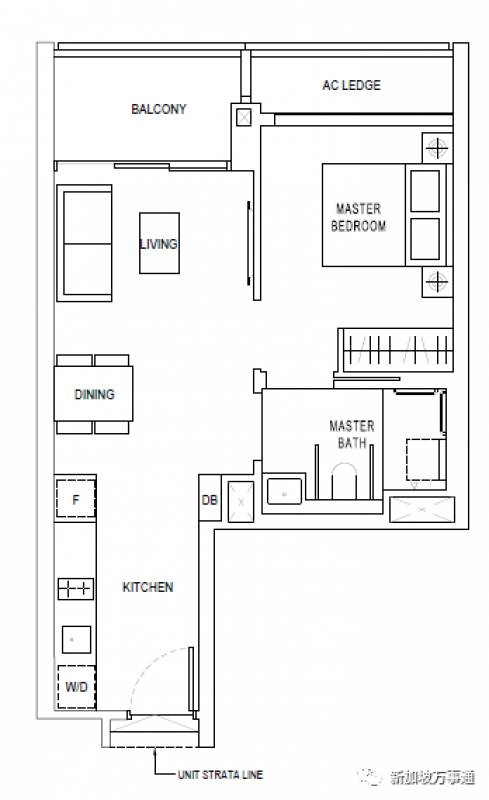 两室一厅二卫户型,面积71平米(764平方尺),120+万新币起售。