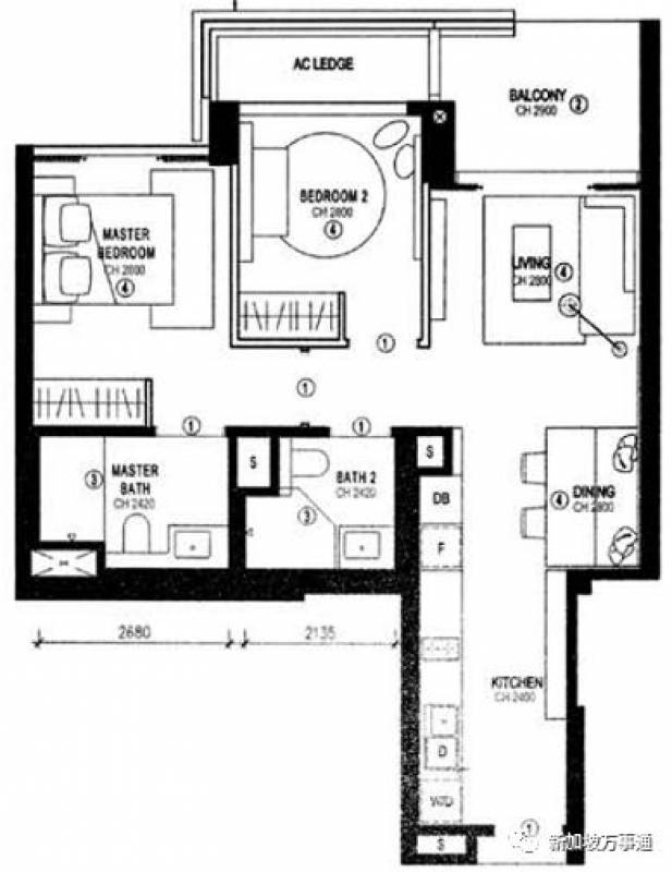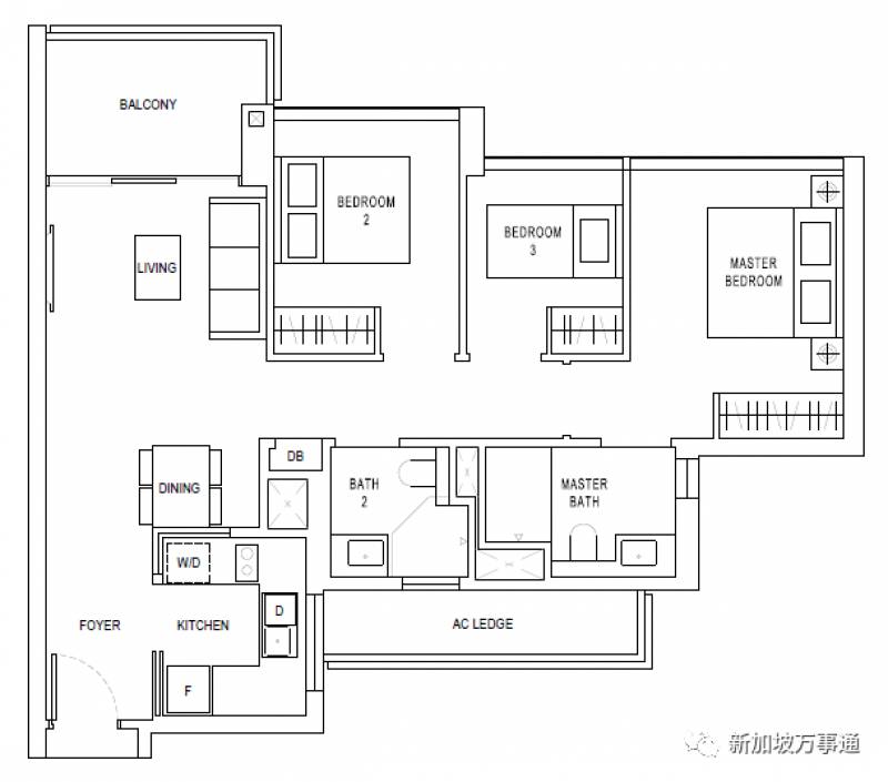 标准三卧户型,面积84平米(904平方尺),138万新币起售。