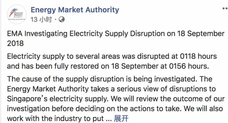 能源市场管理局(EMA)也深夜在facebook上发出po文称会认真看待这次供电问题。制定措施,最大限度减少这类事情的发生。