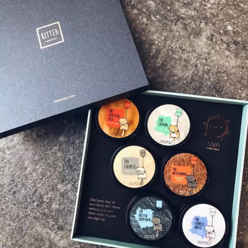 不仅包装可爱,这里的茶也很有特色,比如 Kitticorn 就是菠萝、苹果、树莓与巧克力口味的果茶。每个包装都有猫咪的图像哦!