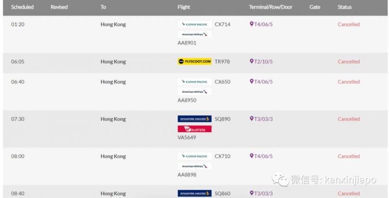 目前,新加坡往返香港、澳门、深圳、广州的超过50趟航班已经取消(文末有附部分航班变动详细信息)。由于取消和延误的航班数太多,樟宜机场的网站首页设立了航班消息特别提醒。
