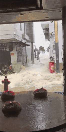 家里的抽水马桶里的水都被海潮打得激了上来。
