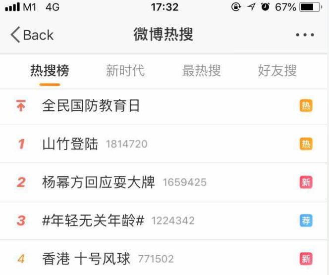 由于“山竹”台风太过凶猛,成了今日微博热搜的主角。力斩当红流量明星。