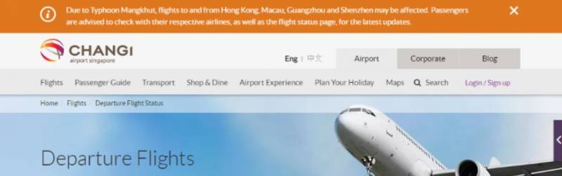点击进去,可以查看具体受“山竹”台风影响的航班。从新加坡飞往澳门的航班已经全部取消。新加坡航空、酷航、国泰航空等纷纷官网也将台风影响的消息放在了网页首位上方!