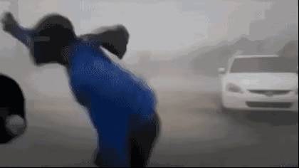 台风来临前,有网友见识到了“鱼跃龙门”,不过还是没改吃货属性,拿起网子就捞。