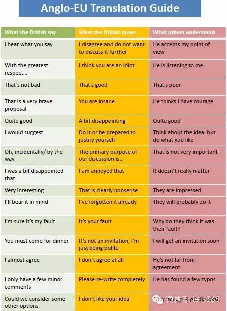 当英国人说“那真是一个非常有勇气的提议”时,他们的意思是“你真是疯了”,而其他人却理解成了“他觉得我很有胆识”。