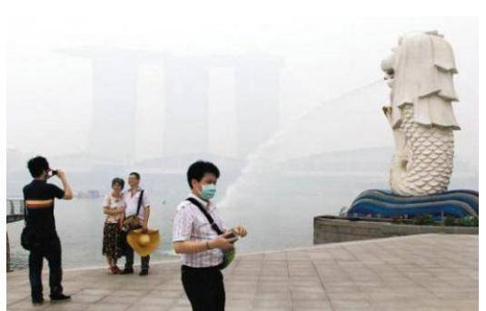 2016年,新加坡因为印尼烧芭也爆发了比较严重的雾霾,让家人捎来了尘封在老家的净化器,也带上了口罩出门。