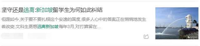 不过,今天小圈儿要和各位圈友分享的一篇文章是反其道而行之的文章,小圈儿看了以后,感觉是给新加坡移民打出很逆向的一张牌!