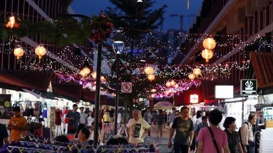 图片来源:新加坡报业 / 夜晚的大巴窑镇中心