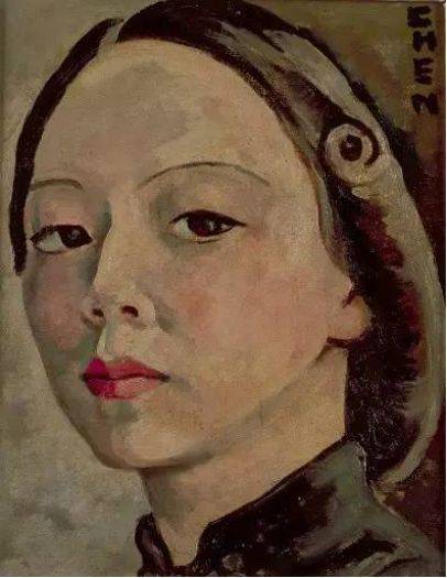 此幅自画像做于1946年,也即陈友仁逝世后和张荔英被释放后, 未亡人依然署名“Chen”。肖像中女性, 依然侧脸而视,依然带着一丝冷峻的白眼,仿佛看穿了人世的一切。
