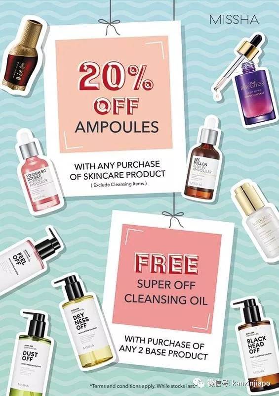 护肤品低至8折,购买任意两件产品可获得免费Super Off卸妆油