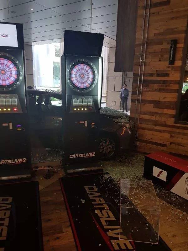 墙壁毫发无伤,汽车豁牙漏齿