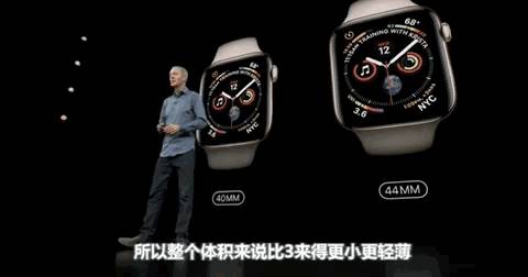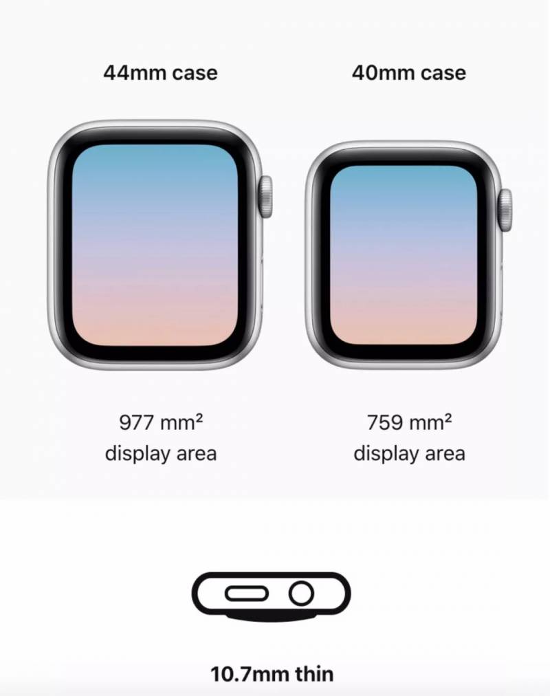 一个是比 Apple Watch S3 大了35%的40mm的型号