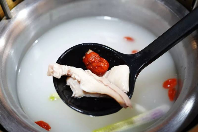 里面都非常大块的猪肚,大骨熬制几个小时,再配上红枣枸杞,可以,这很养生