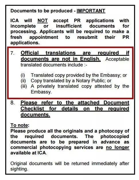 5.所有提交资料如是中文,必须要有新加坡Notary Public的公证或中国公证处的公证,如没有,资料将不被接受。申请者在提交前确保所有资料的认可度。