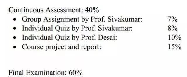 连续评价又分为四个部分,有两个小组作业和两个课堂测验。在国内,只要你考试考得好,最终成绩就会好,而在国外,你考试考的好并不代表你最终总成绩也好。