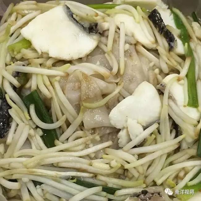 三捞河粉的是用河粉、芽菜和鱼片炒制。用料不是很猛,但却非常入味,是本地人的一道经济美食。