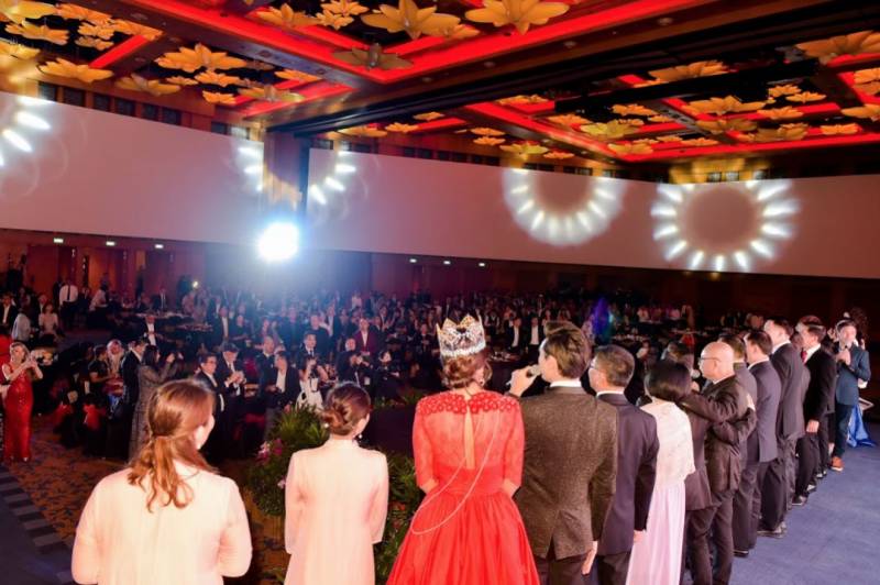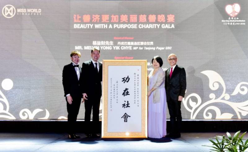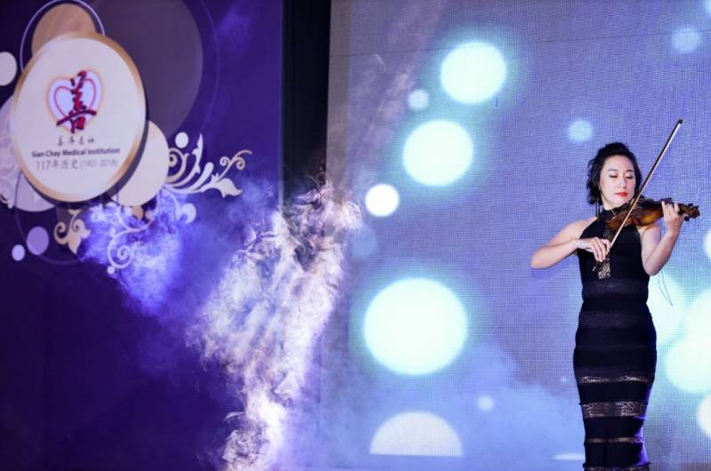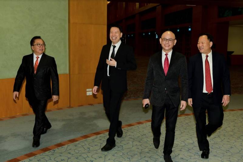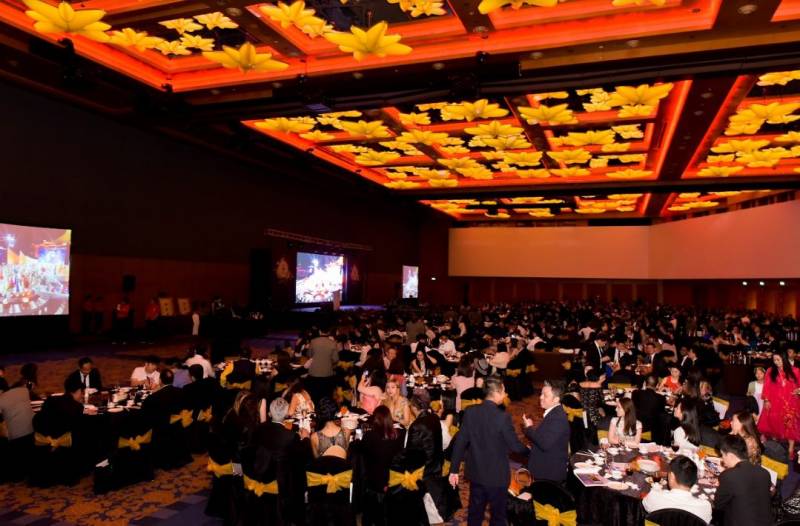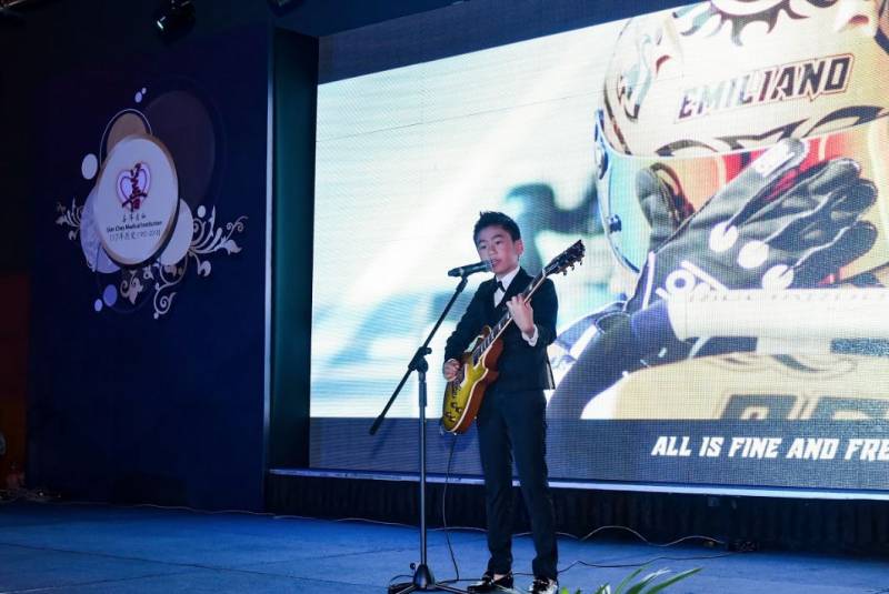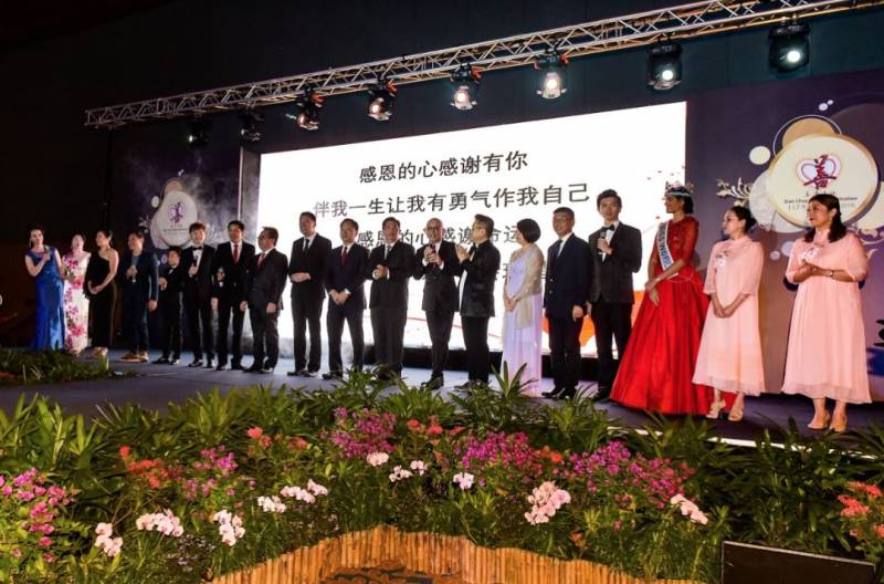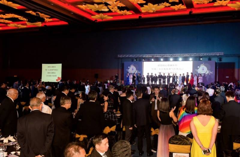 晚宴主宾杨益财先生、卓顺发主席、副主席吴木兴博士、郭来兴博士、荣誉主席梁佳吉先生、董事蔡瑞华先生、叶成德先生、杨义东先生、颜毓莹女士以及全体表演嘉宾和当晚嘉宾一起合唱《感恩的心》。