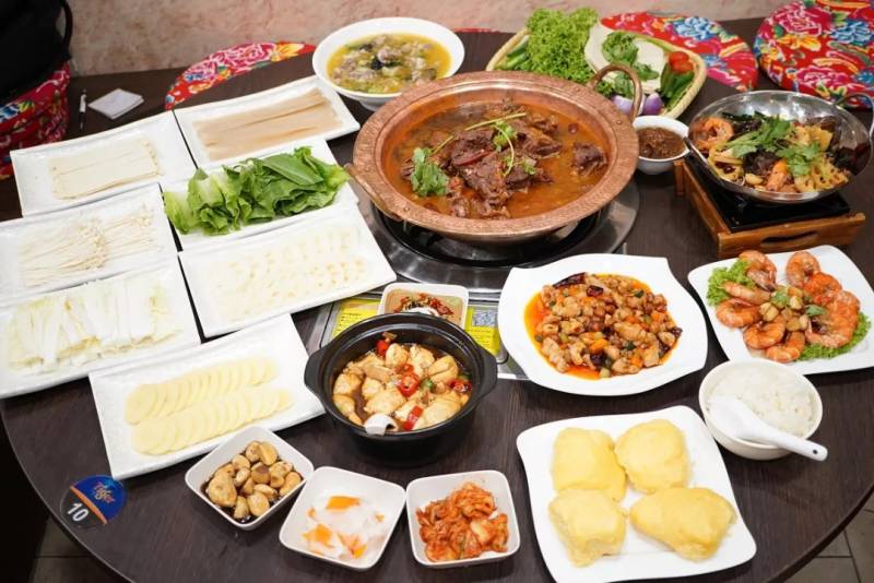 麻辣羊蝎子、麻辣香锅、酸汤肥牛、养生羊杂汤、水煮牛(猪、羊)肉、牛腩炖土豆、辣炒花蚬子、干锅肥肠、干锅有机花菜、干锅土豆片、溜肥肠、金蒜煎虾、宫保鸡丁、油淋生菜、地三鲜、海带烧土豆片、干煸四季豆、私房豆腐、酸辣土豆丝、蒜蓉西兰花、尖椒干豆腐、羊肉冬瓜汤、小鸡炖蘑菇、酸菜五花肉、松仁玉米、板筋干豆腐丝、大丰收蘸酱、酱牛肉、老醋木耳、黄瓜拌猪耳、香酥茄汁鱼(凉)、玉米饼、蛋炒饭、番茄鸡蛋热汤面、大米饭。