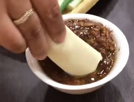 蘸什么酱呢?鸡蛋酱!鸡蛋酱上锅蒸几分钟,在用香油、白糖、鸡精调均放在碟子里。别提多香了!