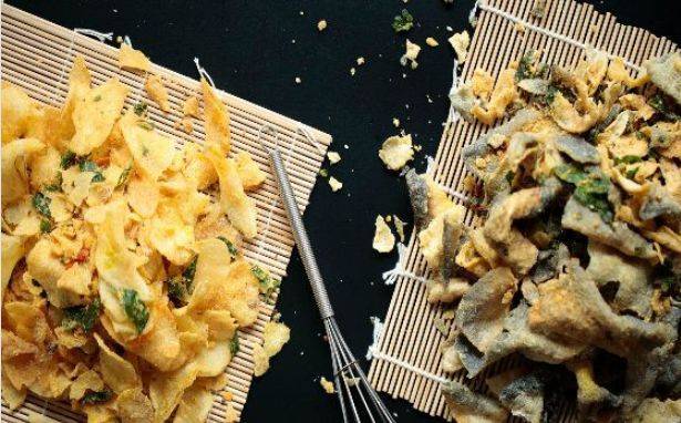这家售卖咸蛋鱼皮和咸蛋薯片等