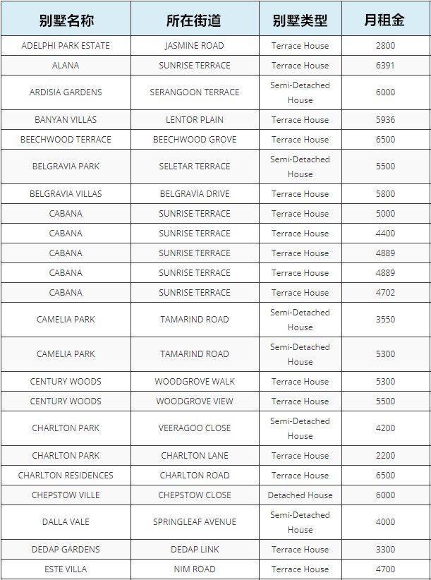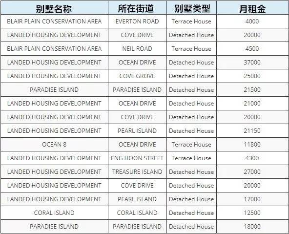 位于GOODMAN ROAD的别墅租金最贵