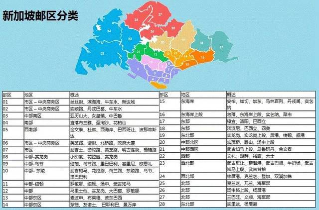 我们先来看下新加坡的邮区划分