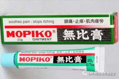 小仙女:虎牌的驱蚊喷雾(一般我会喷在裤脚和衣服下摆处,不直接喷在皮肤上)或者驱蚊贴纸(一般贴在儿童背后,贴前面容易被手痒的孩子撕掉,给儿童防蚊用)。其实我家常年必备的是“MOPIKO无比膏”,各种痒,一抹就好
