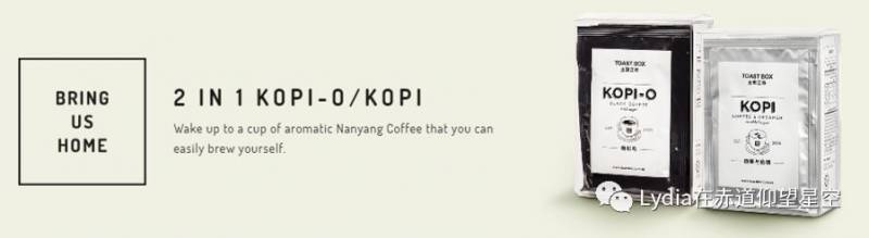 小仙女: Toast Box盒装咖啡 ——黑咖啡或者二合一咖啡。还可以顺带买一瓶咖椰酱来抹土司吃哦。