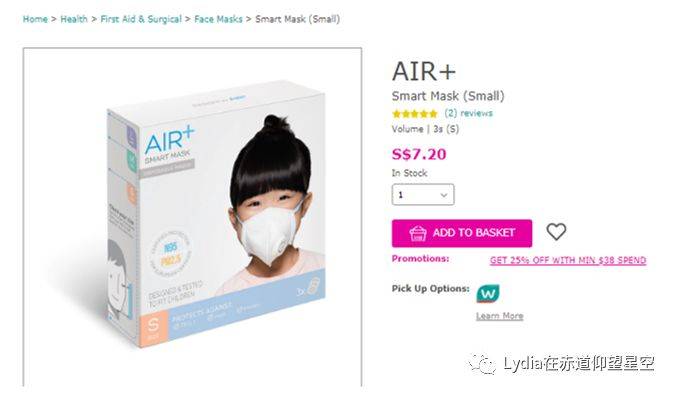 这个口罩可以在Watsons屈臣士的店铺买到,机场的屈臣士也有,只是有时尺寸不全(口罩根据面部大小有分大中小号,儿童一般买S号,脸大的朋友们就买L号的吧)。买的时候小风扇($29.9)一个人只需要买一个,口罩($7.2)可以根据自己使用的量来决定需要买几盒。小风扇可以拧在所有尺寸的口罩上。