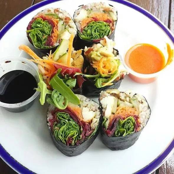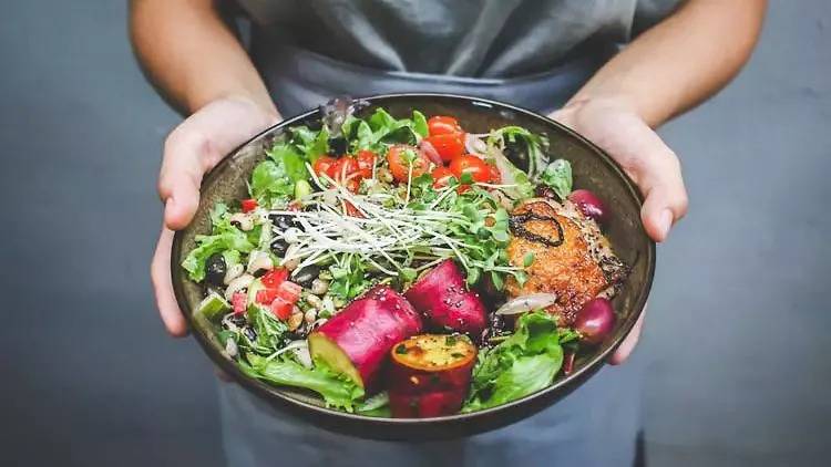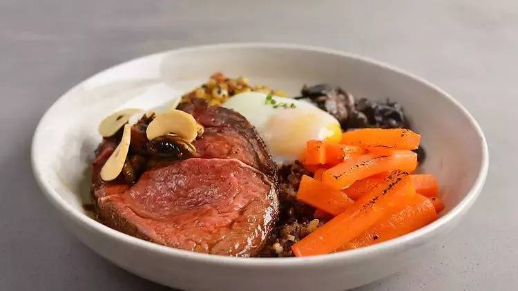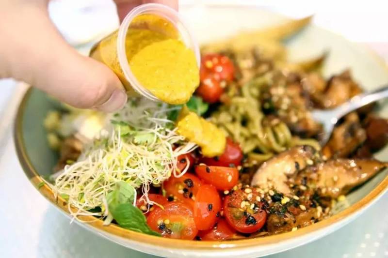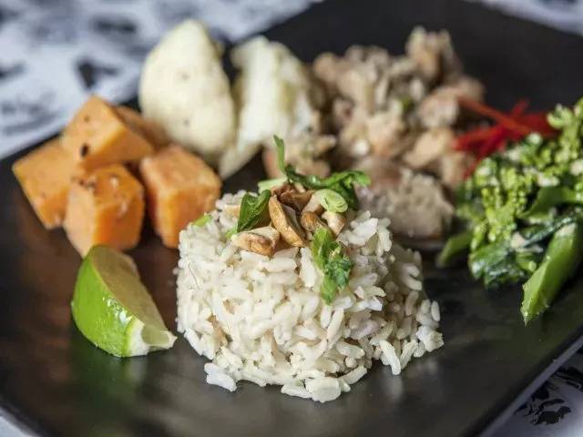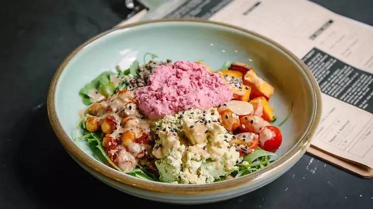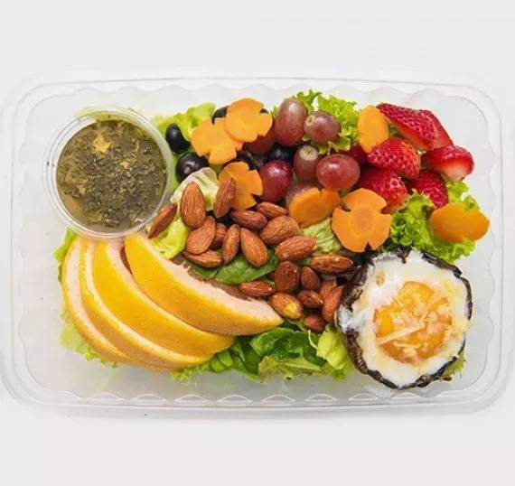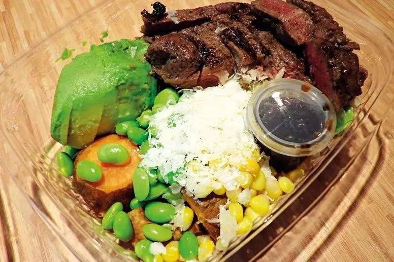 有三文鱼、藜麦、西葫芦和牛油果酱