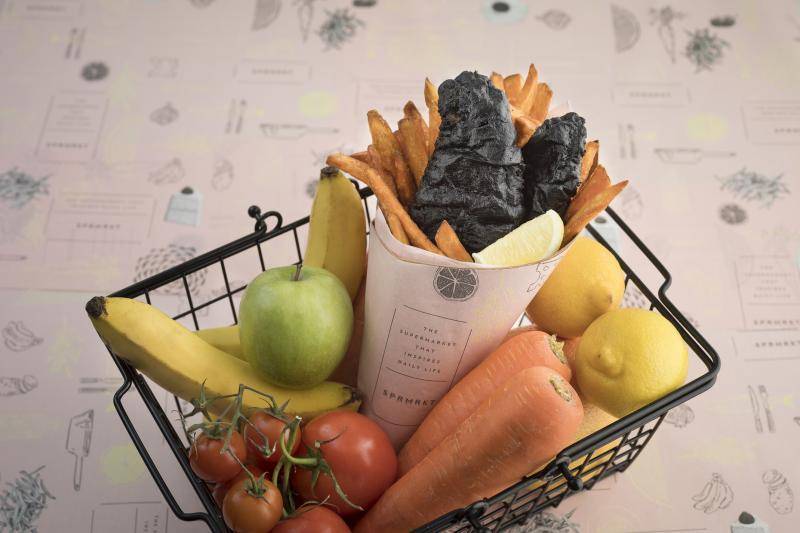 SPRMRKT主厨杨约瑟的招牌菜黑炭炸鱼柳。