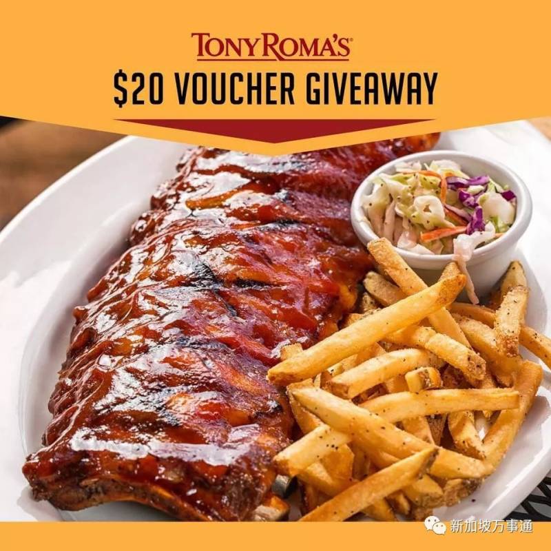 喜欢吃西餐?那千万别错过这个好机会,现在在Tony Roma's消费满40就有机会获得20新元的折扣券~