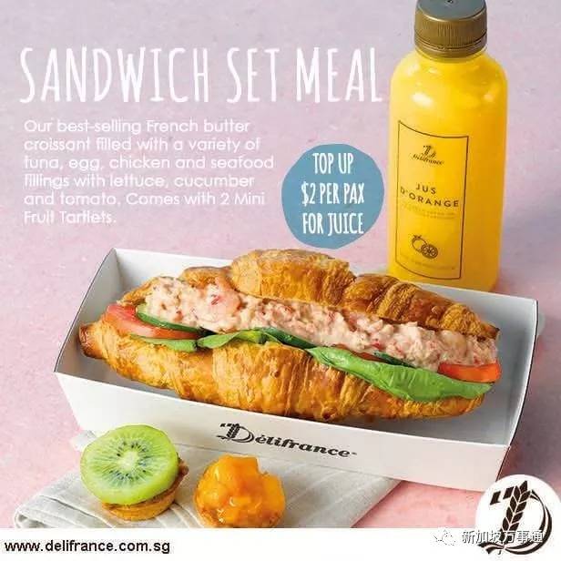 Delifrance的三明治套餐现在有折扣,胃口不好的工作日午餐可以选择这个哦!只要加2新元就可以多一瓶果汁哦~