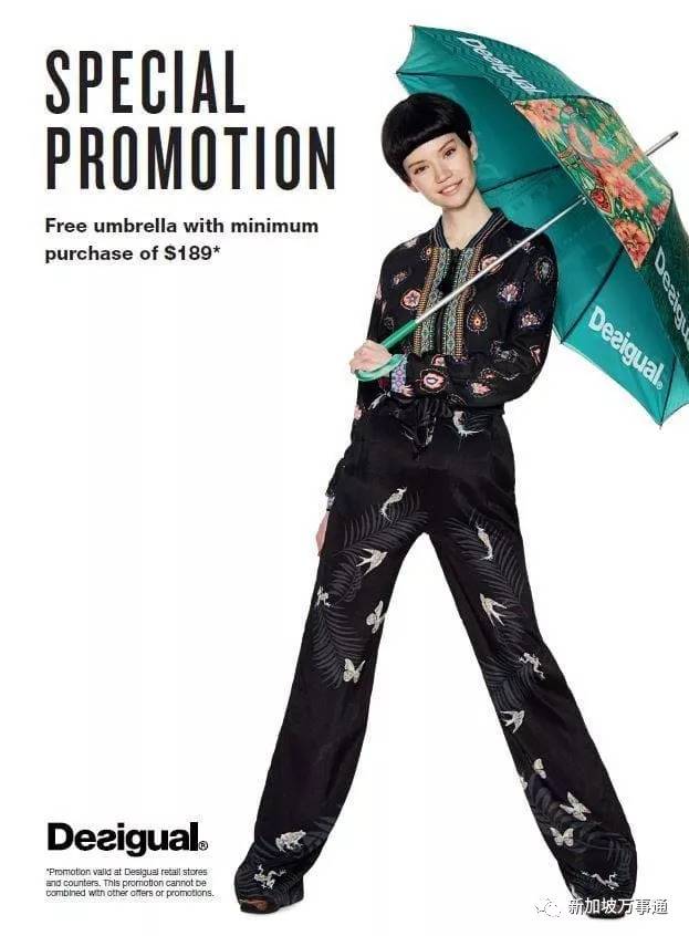 在Desigual消费满189新元,就可以免费获得一把超级美腻的太阳伞~