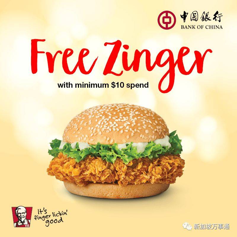 如果你有中国银行的信用卡千万不要错过肯德基的折扣!只要在肯德基用中银信用卡支付,超过10新元,就可以免费获得1个汉堡哦~简直不要太划算了!