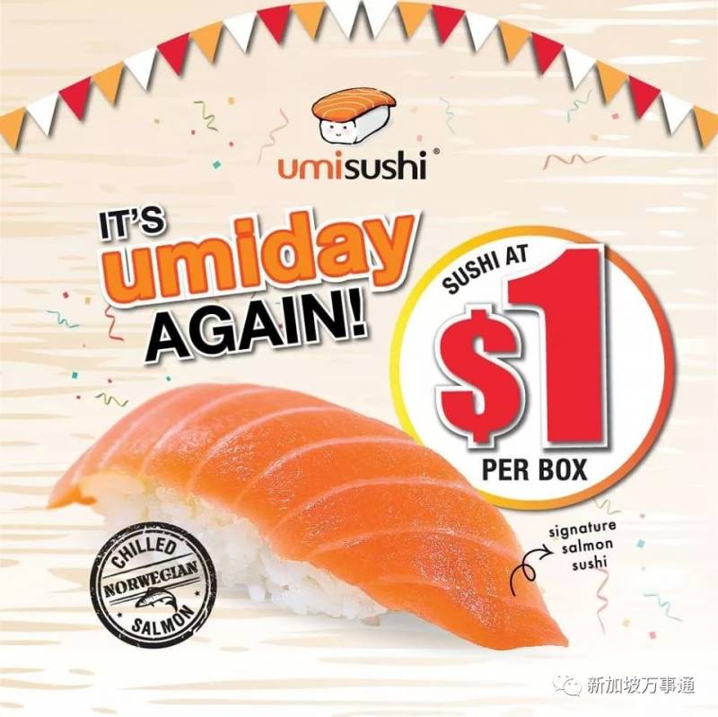 一新元一盒的新鲜美味的寿司我就不信你能低档得住!umisushi现在就有这样的好事,日期大家要记好了,9月13日、20日、27日都有哦!