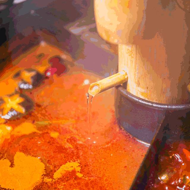 外围依旧是涮锅,将竹筒架于涮锅之上